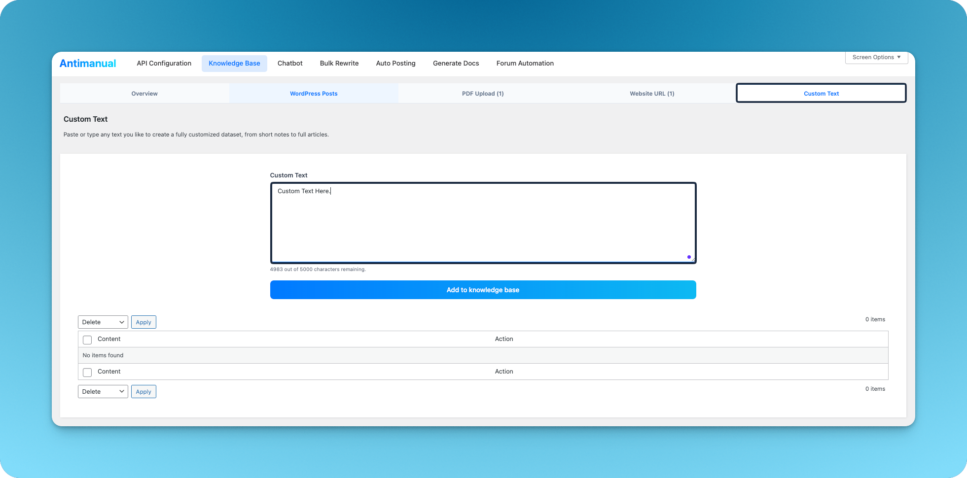 Antimanual is a powerful AI WordPress plugin that lets you build a smart, custom knowledge base using your own content. By training AI on your posts,…