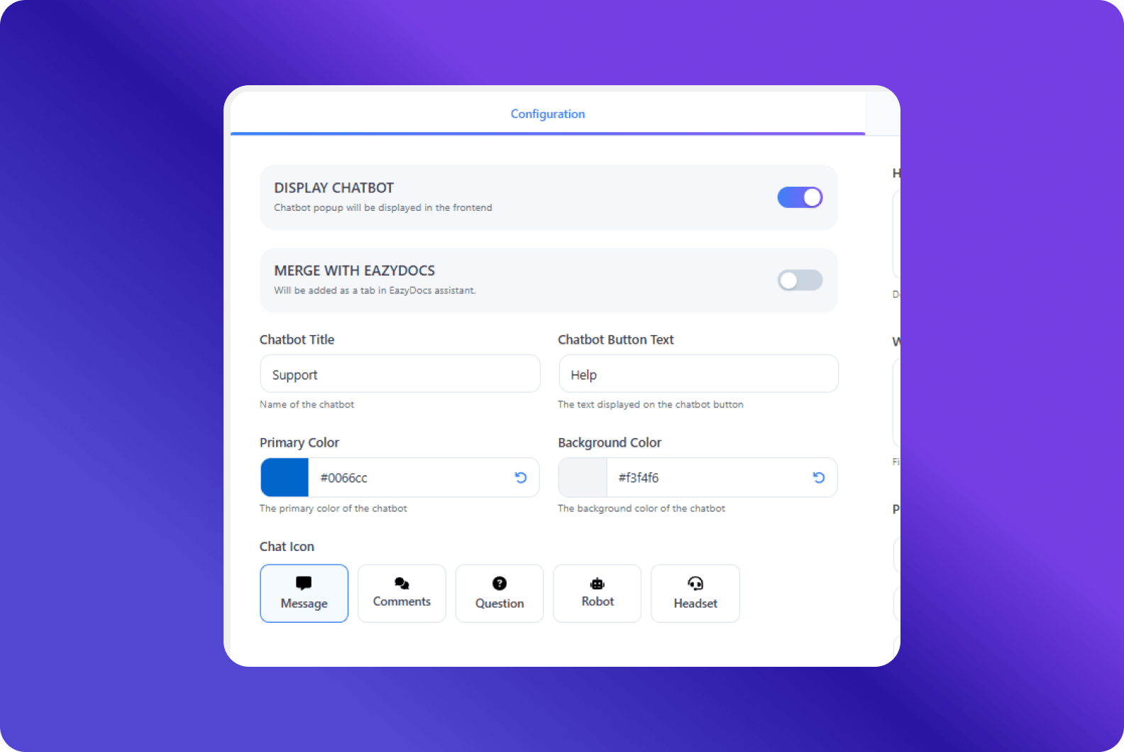 Match the chatbot's color to your brand for a seamless look.