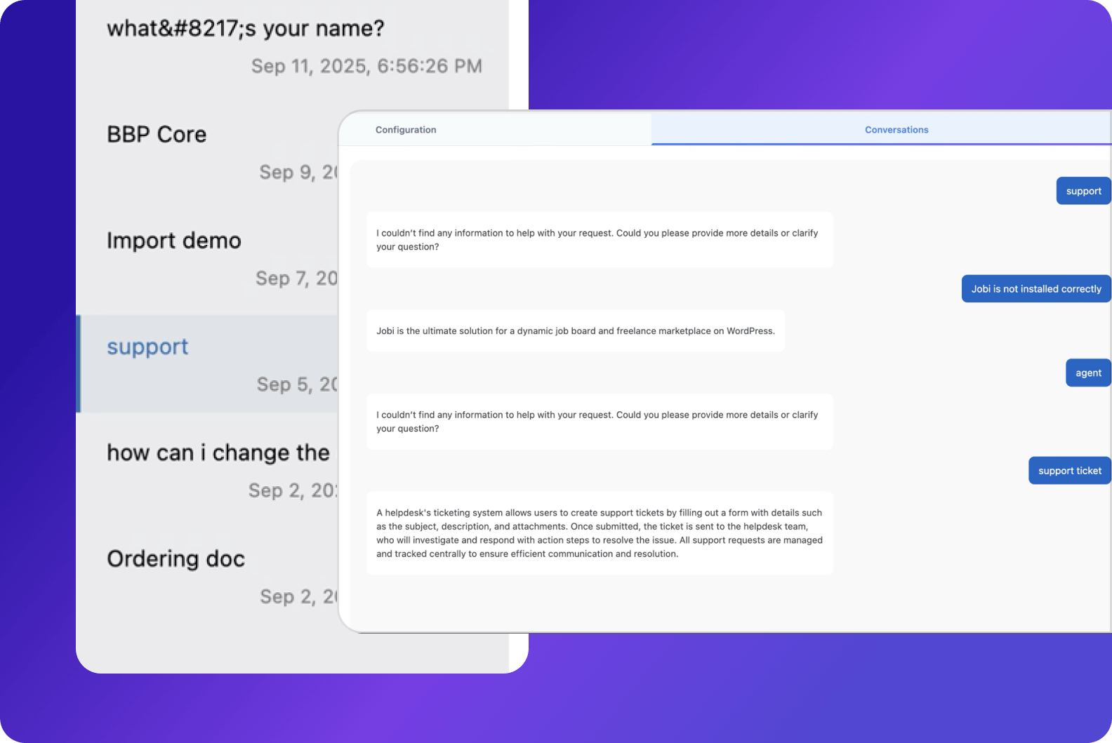 Easily save and review all user conversations directly within your WordPress dashboard, enabling better insights, efficient support tracking, improved user interactions, and streamlined management of queries for enhanced community engagement.