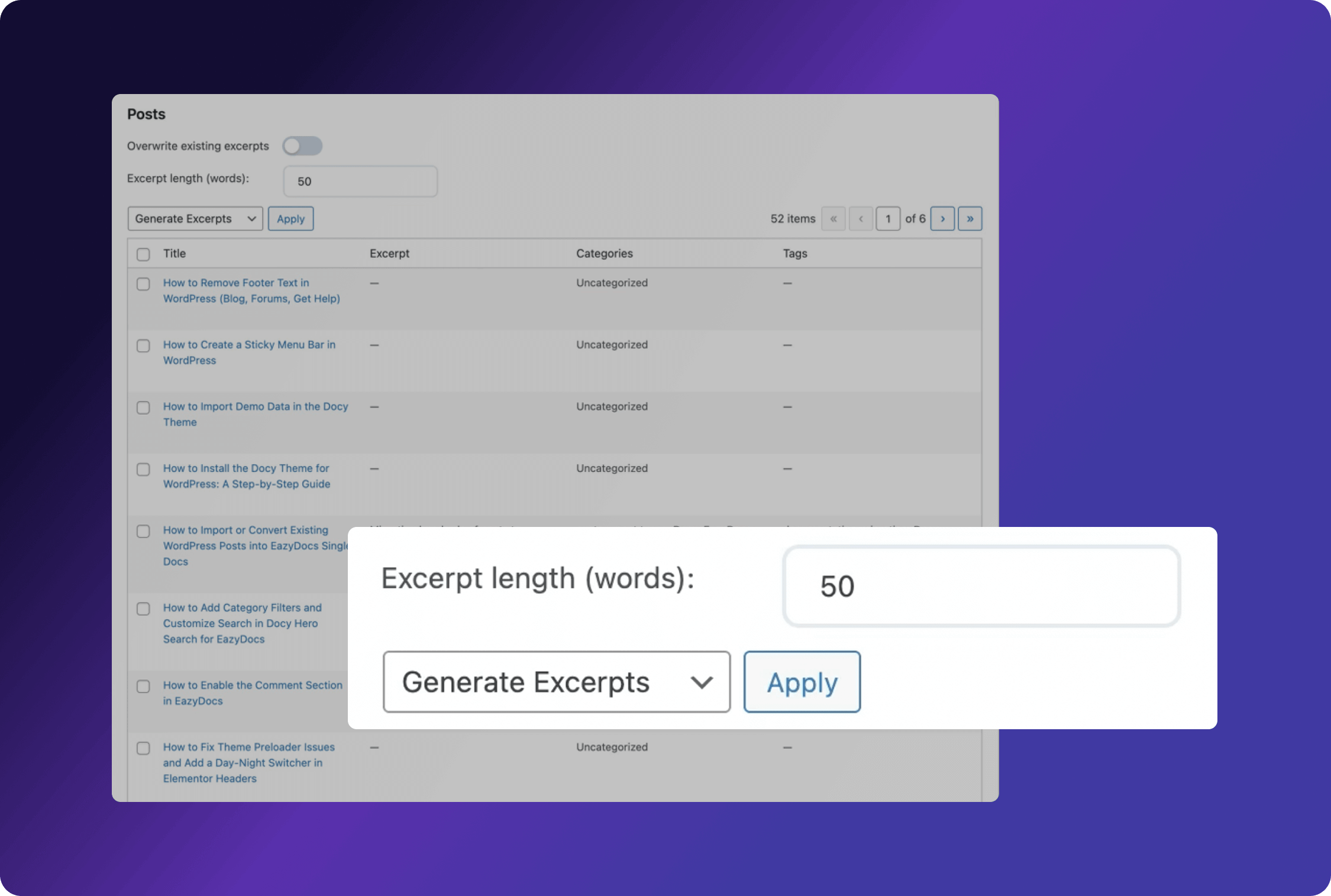 Simplify content management with automated excerpt generation. Select posts and generate professional summaries instantly, saving time while ensuring consistency across your entire WordPress website.